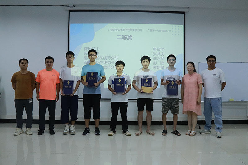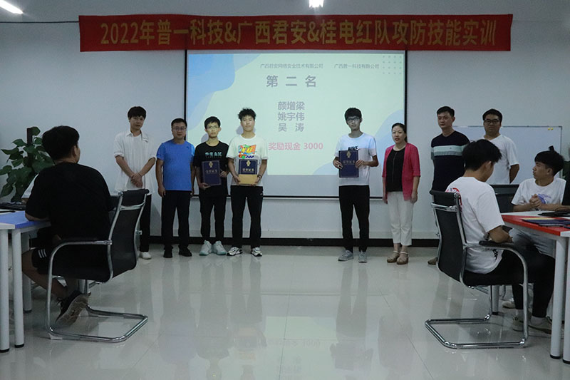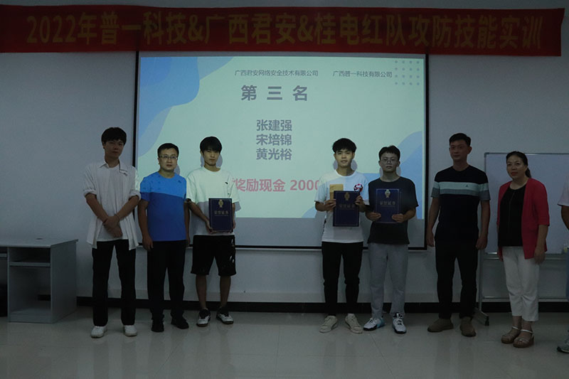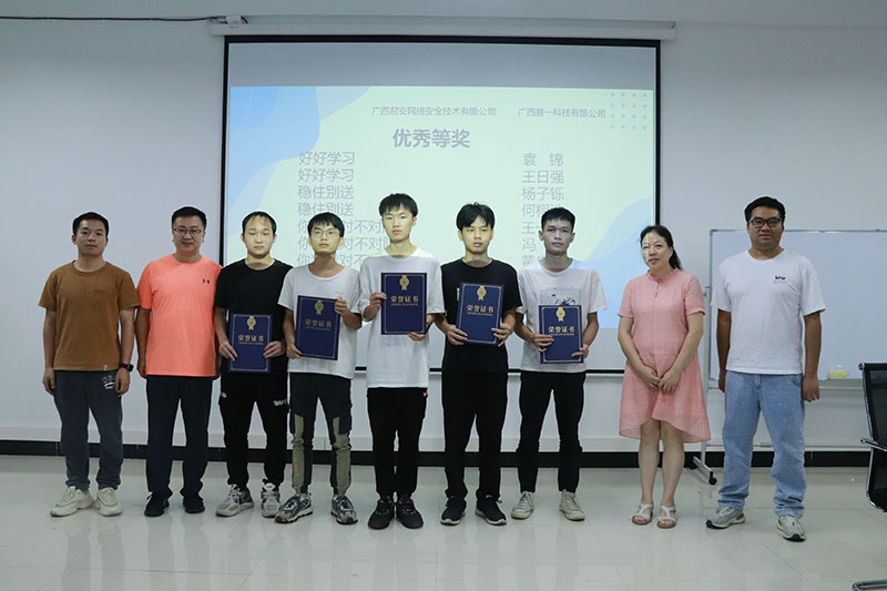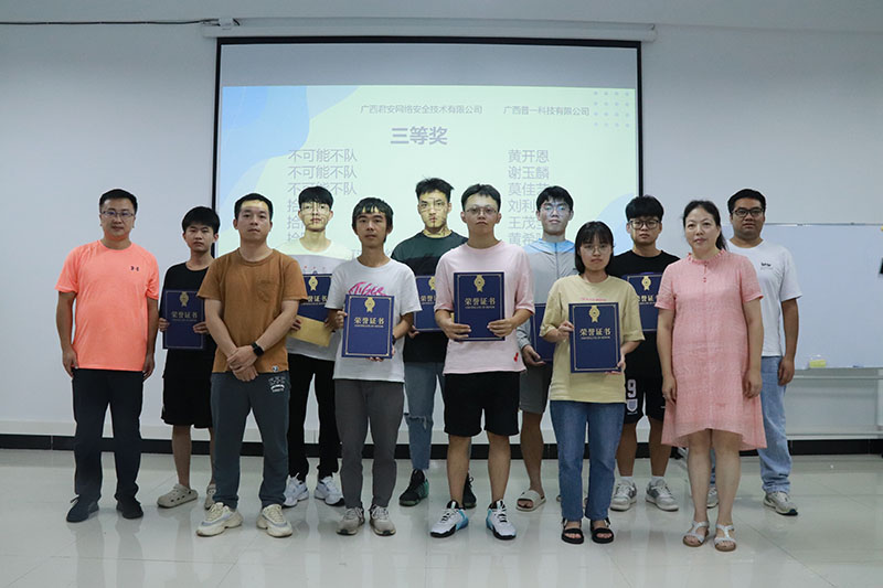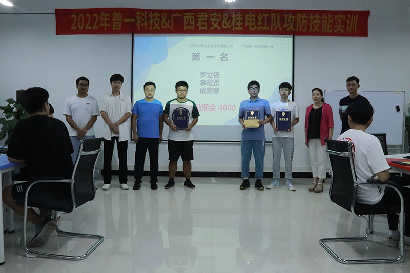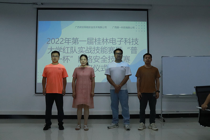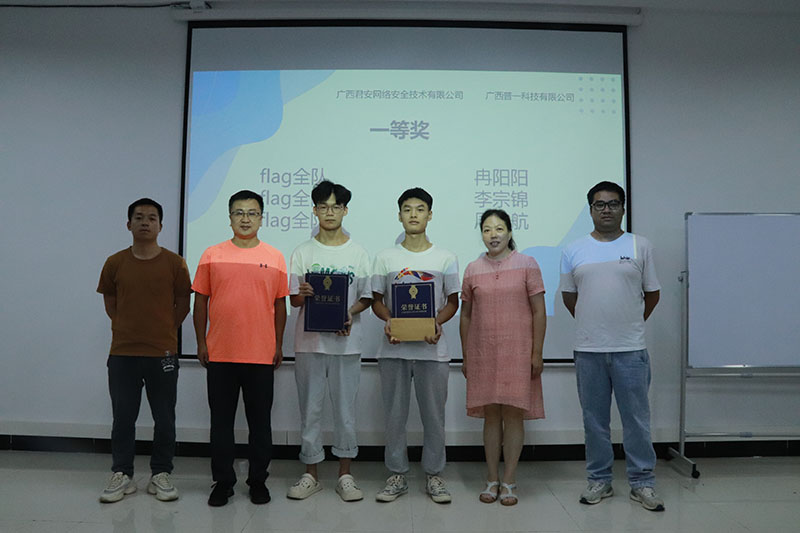 7月22號下午,紅隊(duì)攻防實(shí)戰(zhàn)技能培訓(xùn)結(jié)營暨靶場任務(wù)頒獎儀式在四創(chuàng)中心四號樓404實(shí)驗(yàn)室進(jìn)行。學(xué)院網(wǎng)絡(luò)空間安全專業(yè)負(fù)責(zé)人及安網(wǎng)閣指導(dǎo)老師陶曉玲、廣西普一科技有限公司安全技術(shù)總監(jiān)陽漓斌、廣西君安網(wǎng)絡(luò)安全技術(shù)有限公司總經(jīng)理位磊、廣西普一科技有限公司高級威脅分析工程師梁月唯老師與應(yīng)急響應(yīng)工程師黃比精老師參加了這次的頒獎儀式。
