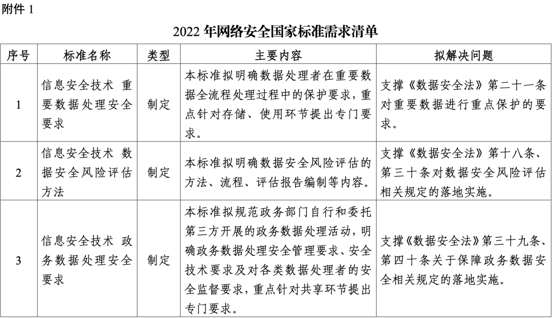 全國信安標委公布《2022年網絡安全國家標準需求清單》